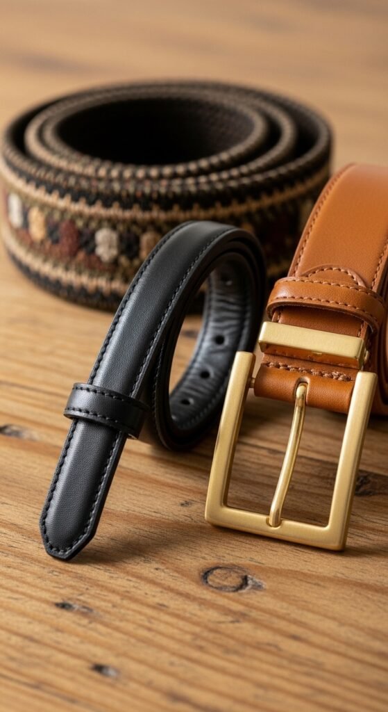 • Patterned belts: Fun for casual outfits or adding texture to simple ensembles.